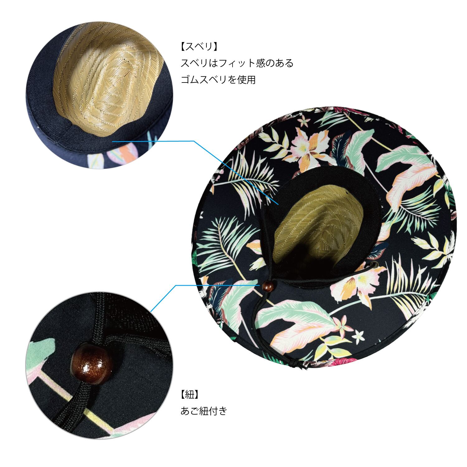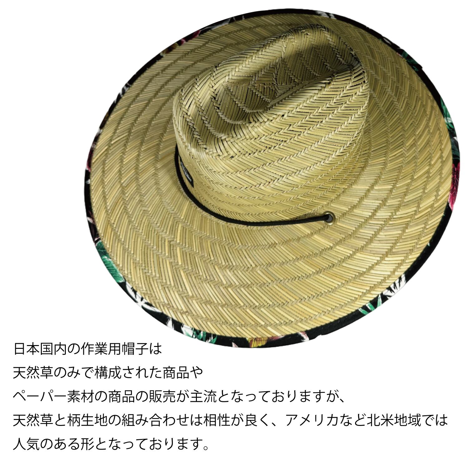 日よけ遮光を目的につば裏生地を張り付けたおしゃれな農作業麦わら帽子です。